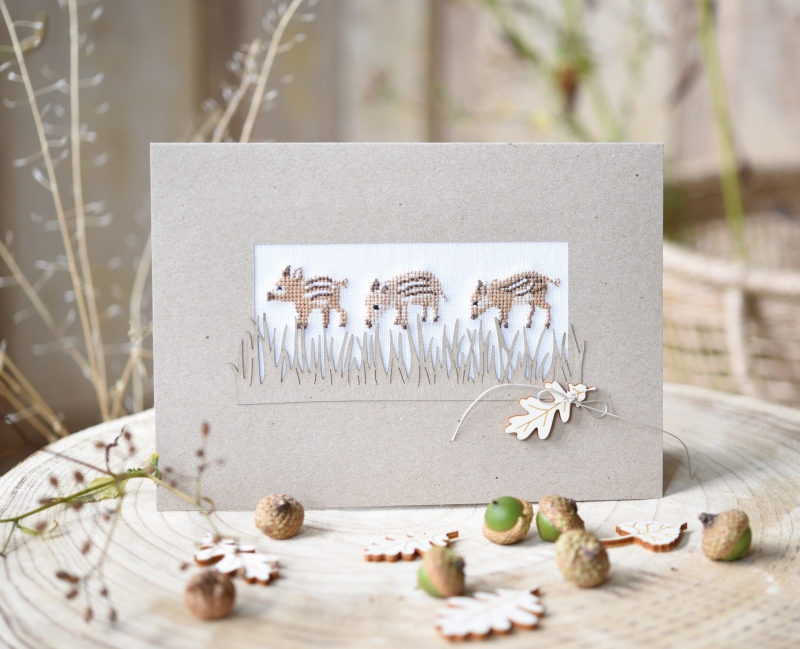 Die Karte hat eine Größe von ca. 21 x 15 cm (Din A5). Das Stickleinen und ein Briefumschlag werden mitgeliefert.